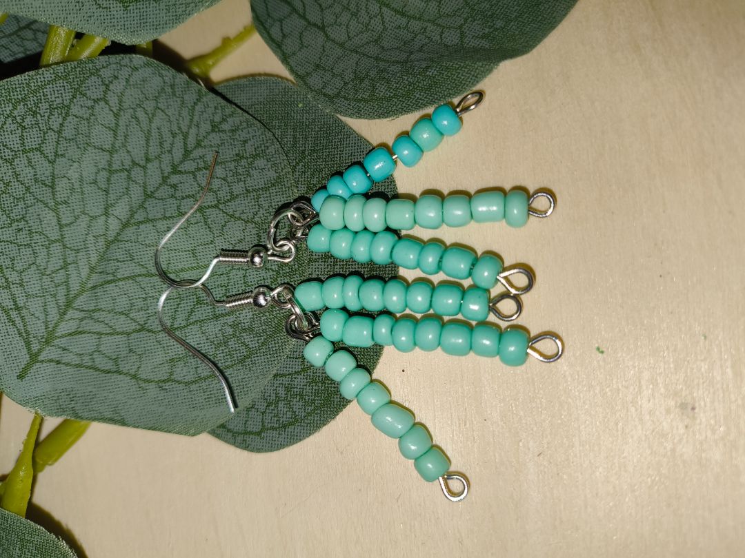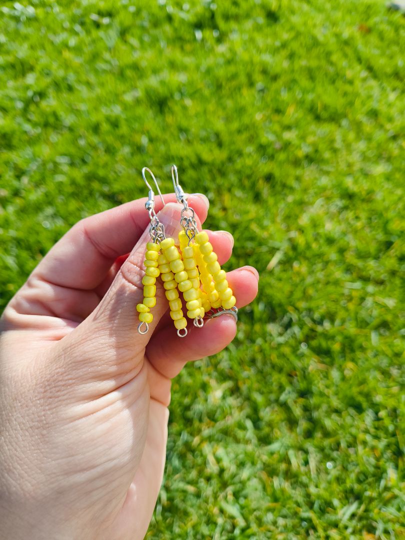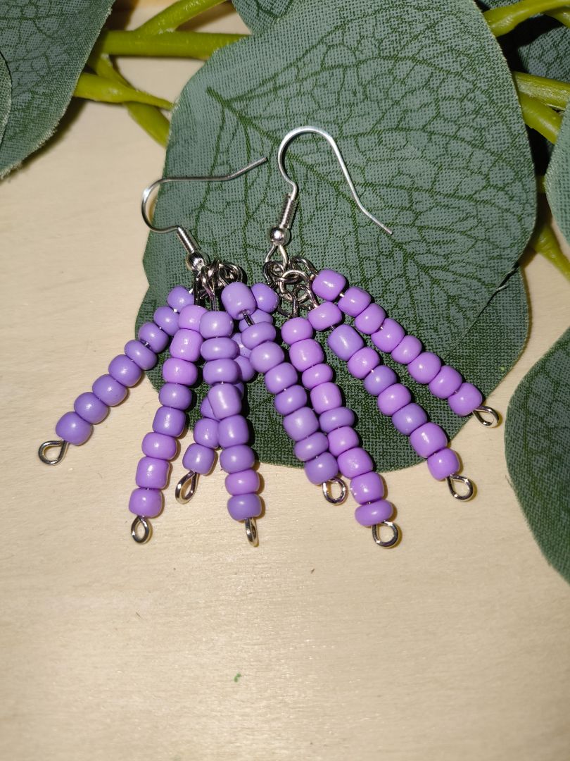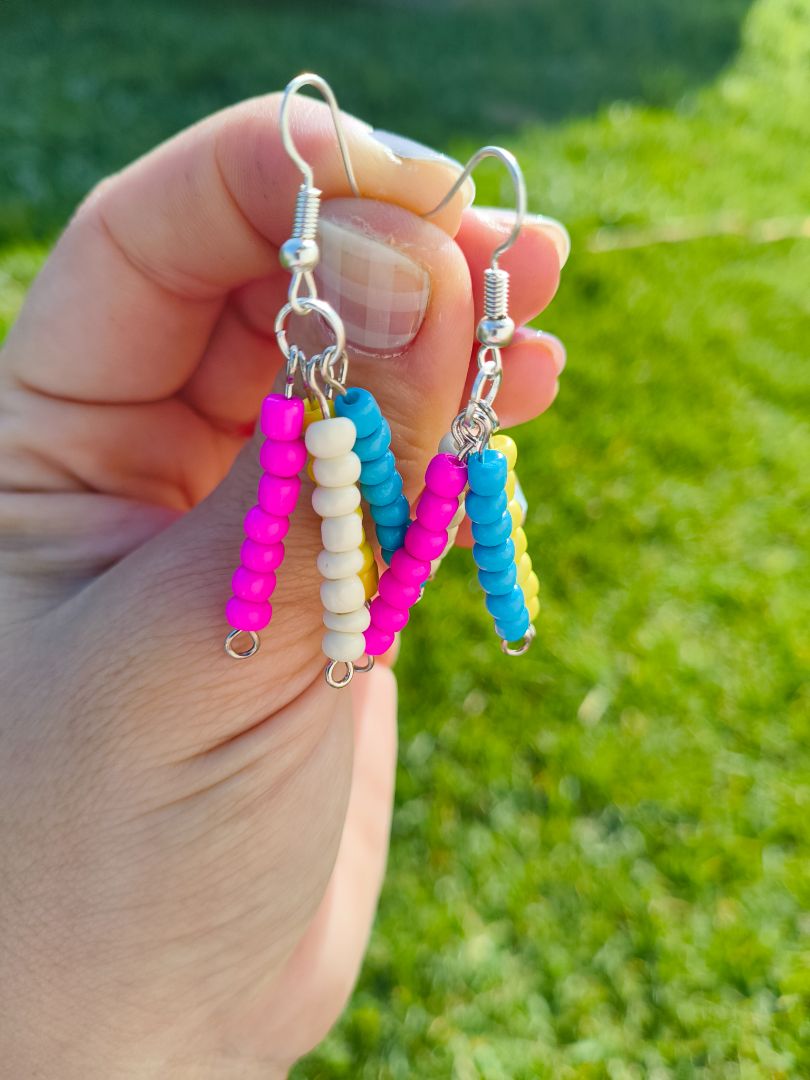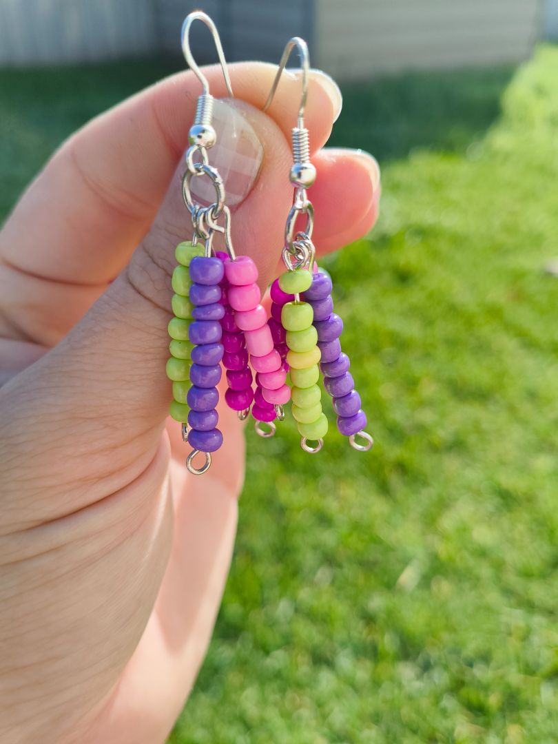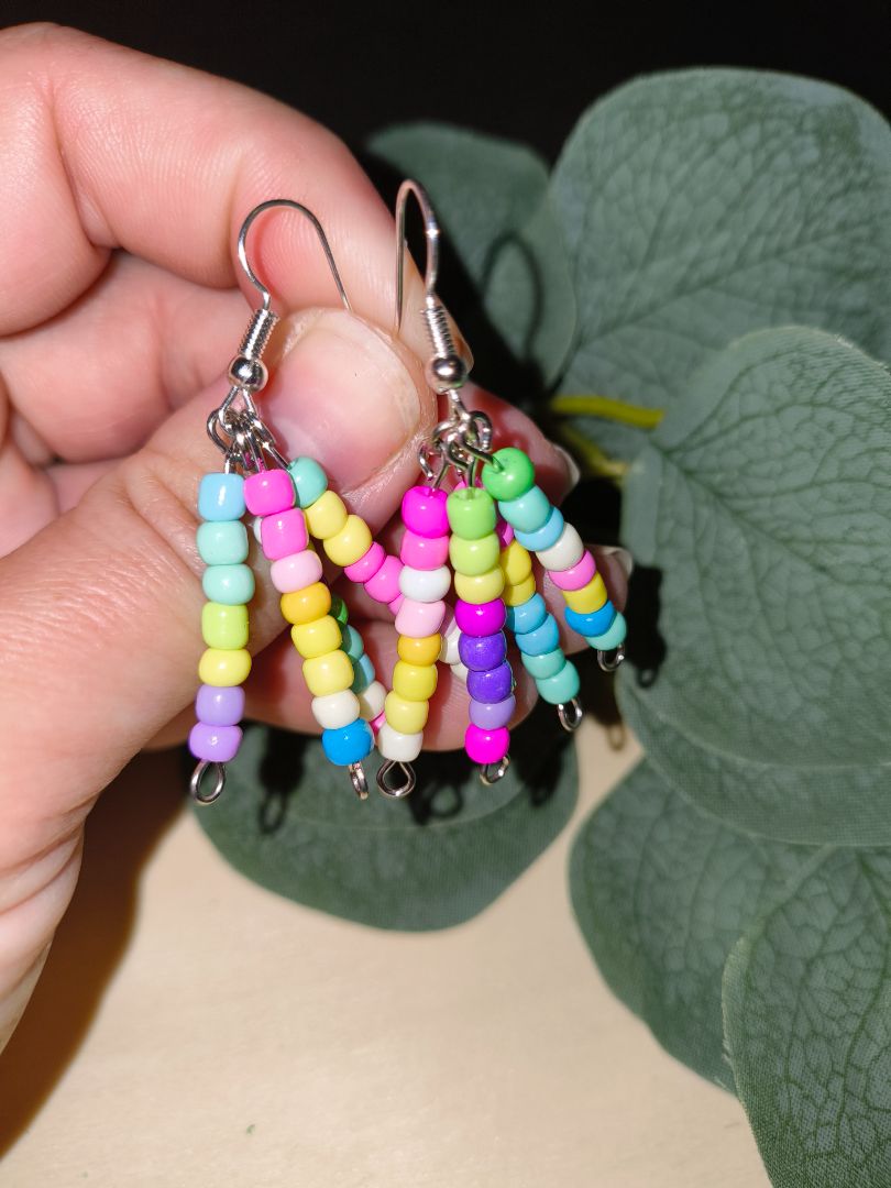 Multicolor beaded earrings that look like fireworks going off in the sky