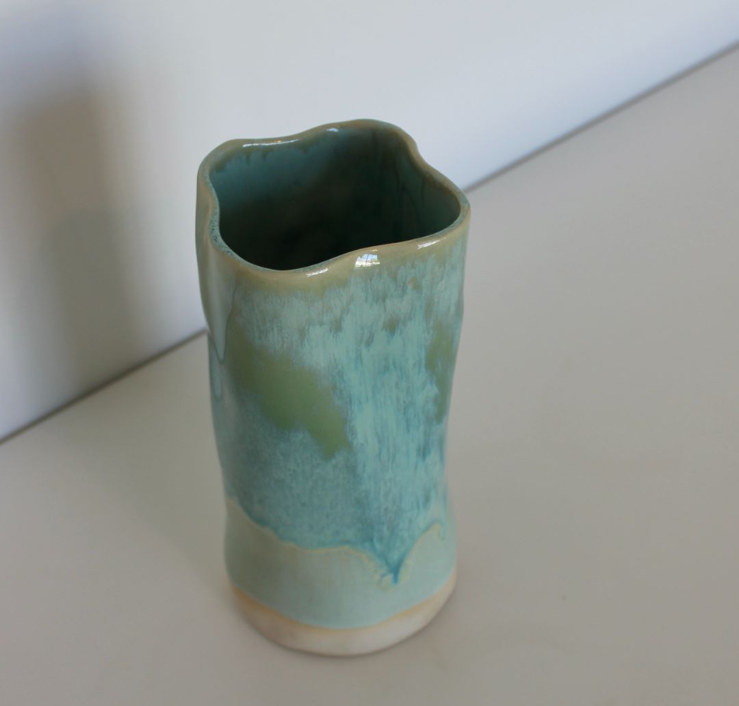 This turquoise vase mirrors the shifting colours of the ocean — from soft seafoam to deep, clear blue. Its fluid form and layered glaze capture the gentle movement of water along the shore.