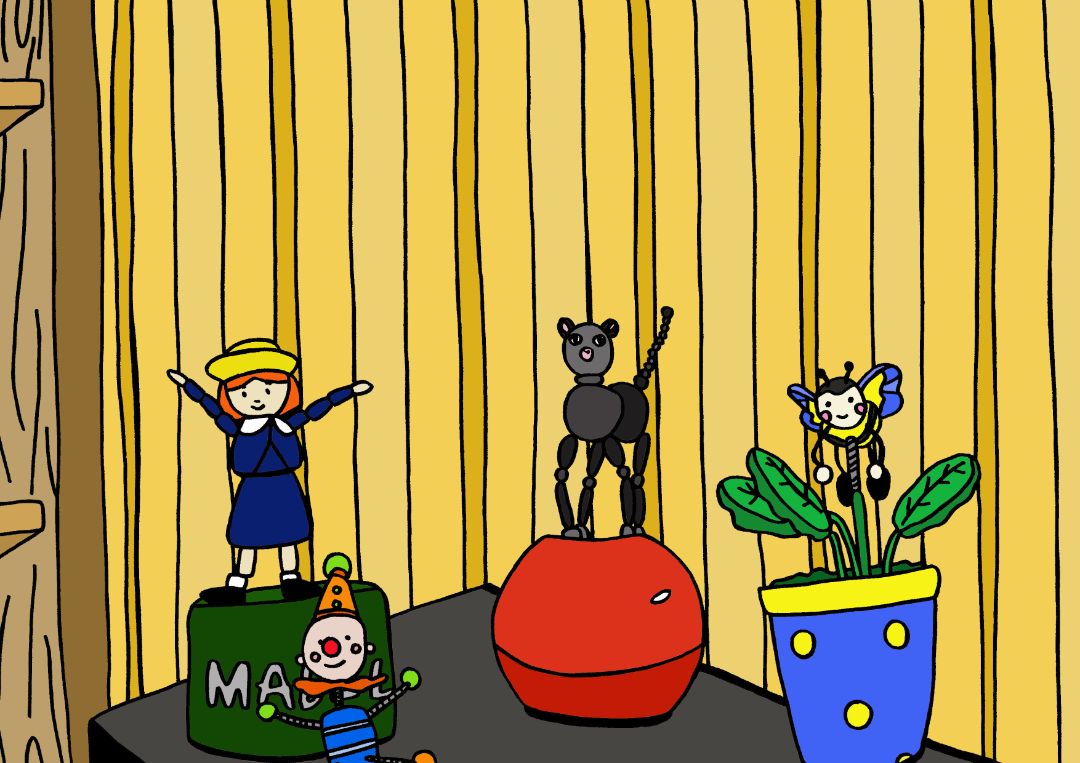 An A4 giclee print of a drawing of some cutie little push puppets.
