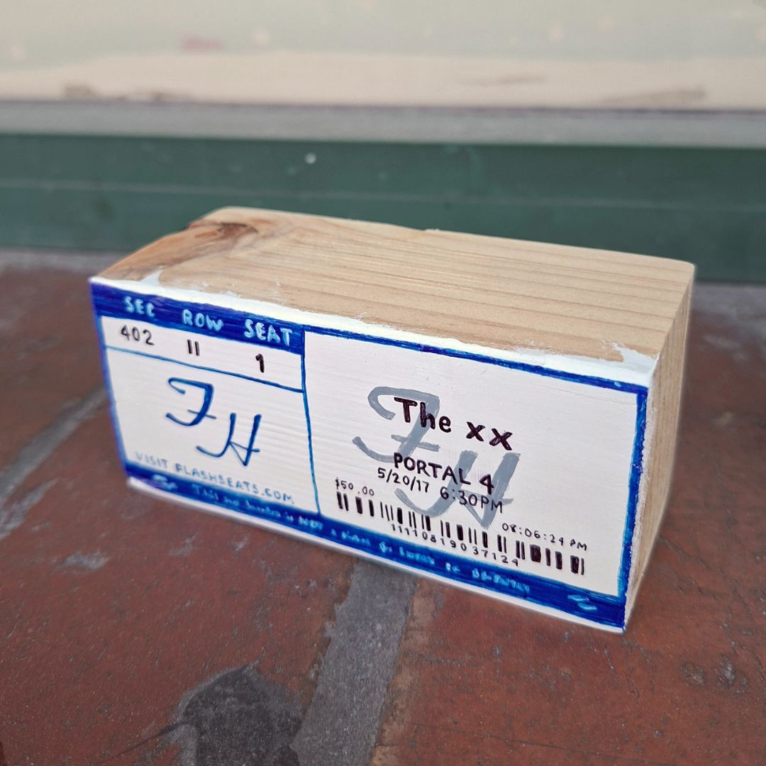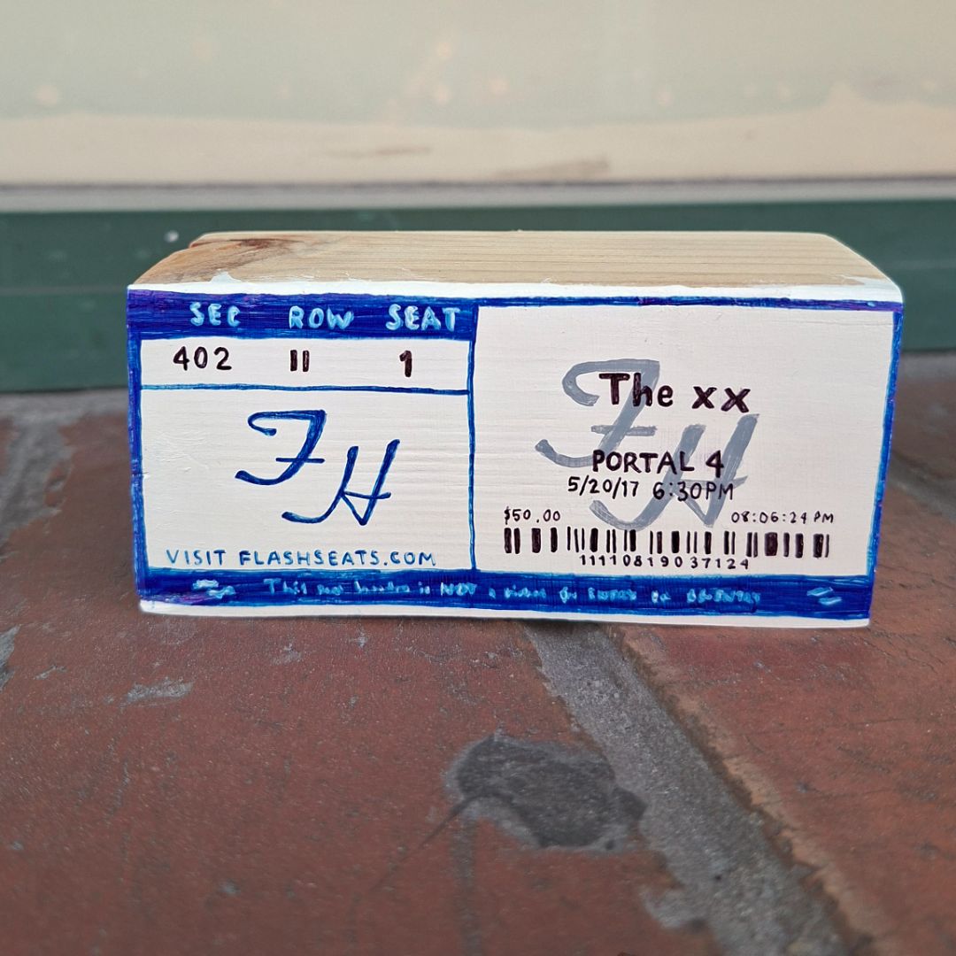 Tegan Iversen The xx ticket artwork, 10cm x 5cm x 4.5cm